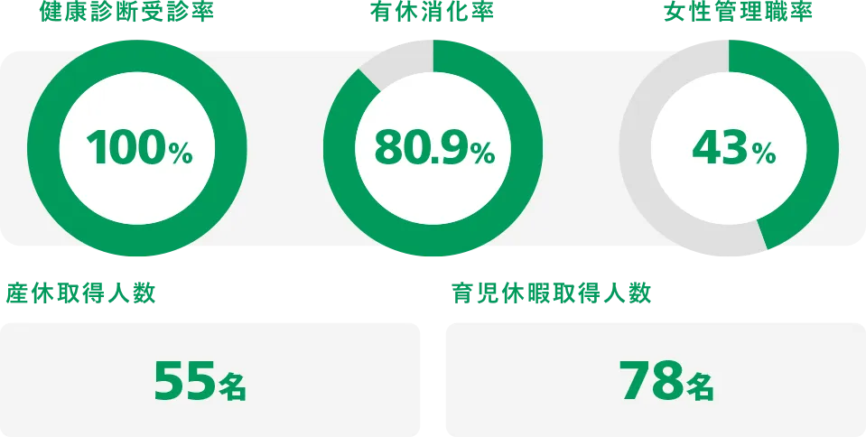 ※「くるみん認証」「えるぼし(3つ星)」「健康経営優良企業」認証を取得しています。