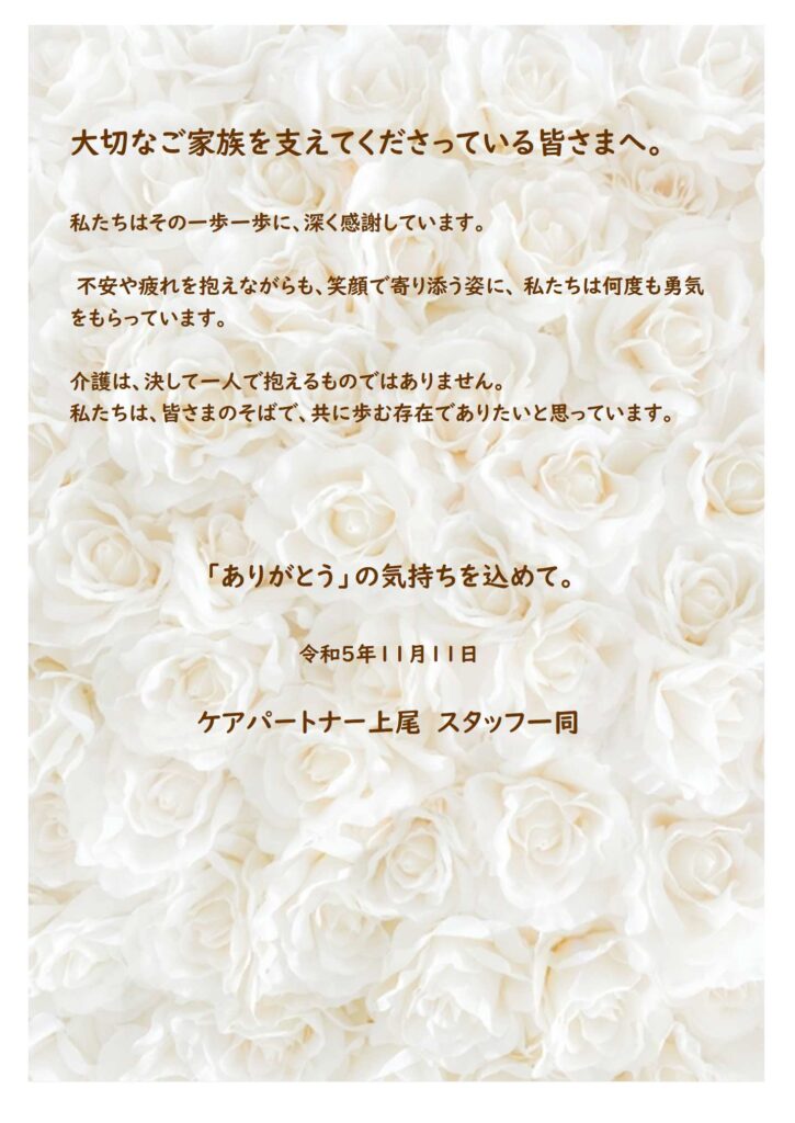 ケアパートナー上尾のスタッフは、お客様の為に何が出来るかをいつも考えています。