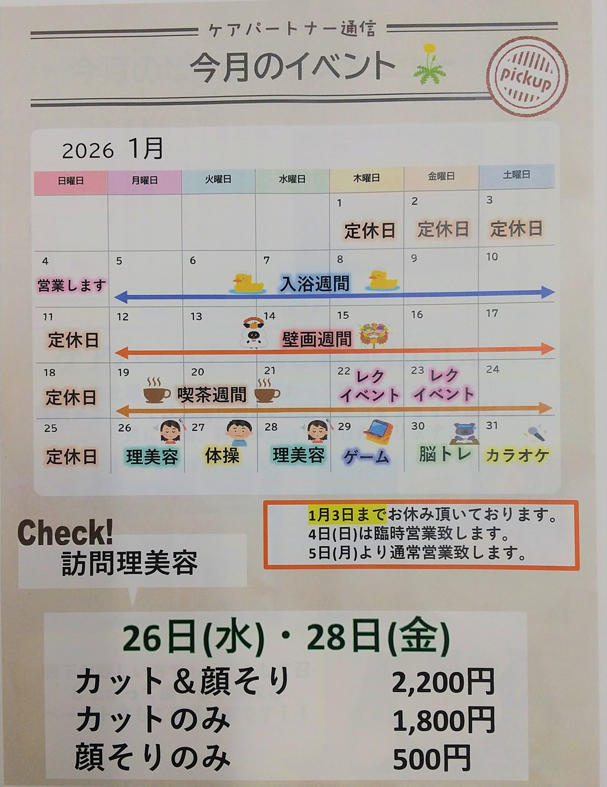 | 休日 | その他の日曜日・年末年始(12/30~1/3) |