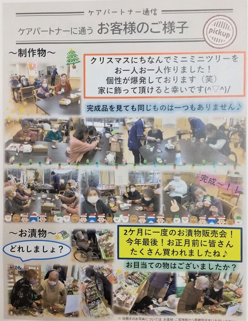 今回は、ご利用のお客様の11月と12月の様子の写真を載せております。