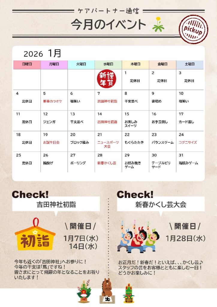 当たり前だけど、心のこもったパートナーのような施設の中で、温かいお風呂、美味しい食事、やりがいのある機能訓練、楽しいイベントを用意しています!