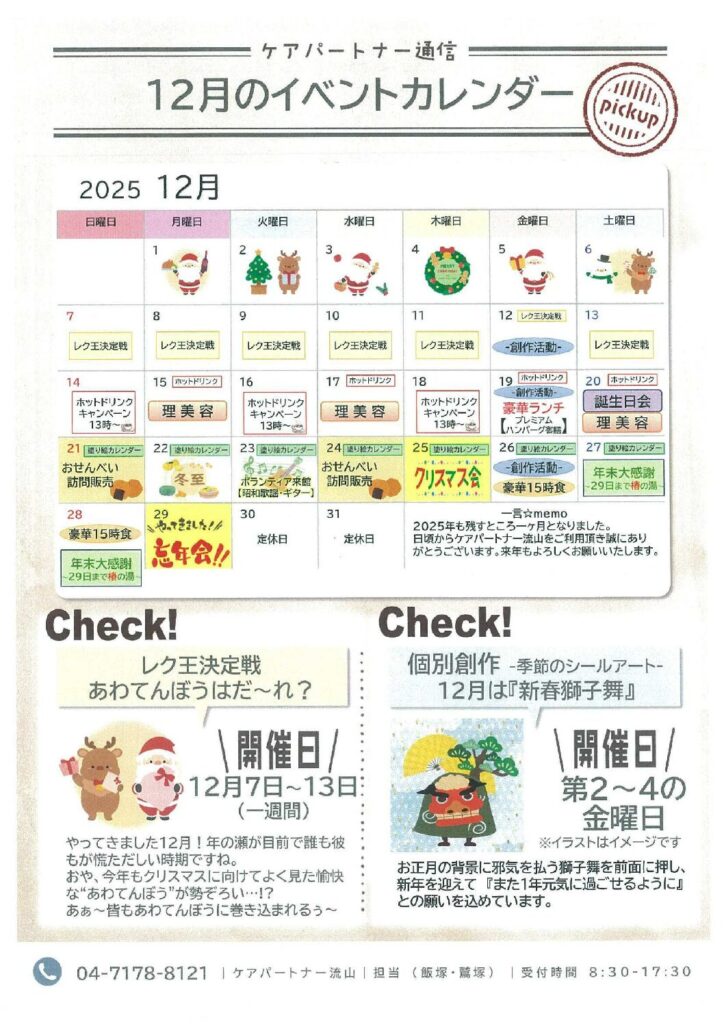 ケアパートナー流山は、2025年11月1日 10周年を迎えました。開設当初は、10名にも満たないお客様のご利用でしたが今は、日々、42名位のお客様にご利用していただけるデイサービスと成長させていただきました。介護事業を通じ、地域の皆様に貢献出来る事は何か?地域の方々に当社を知っていただく為に何ができるのか?を日々、考え運営しています。