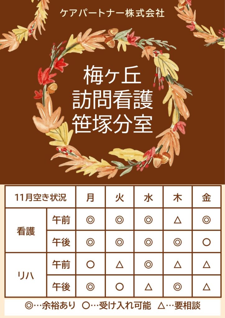 | 営業日 | 月~金(9:00~18:00) ※医師の特別指示が出ている場合や終末期の患者様の場合、土日も対応させていただく場合がありますのでご相談ください。 |