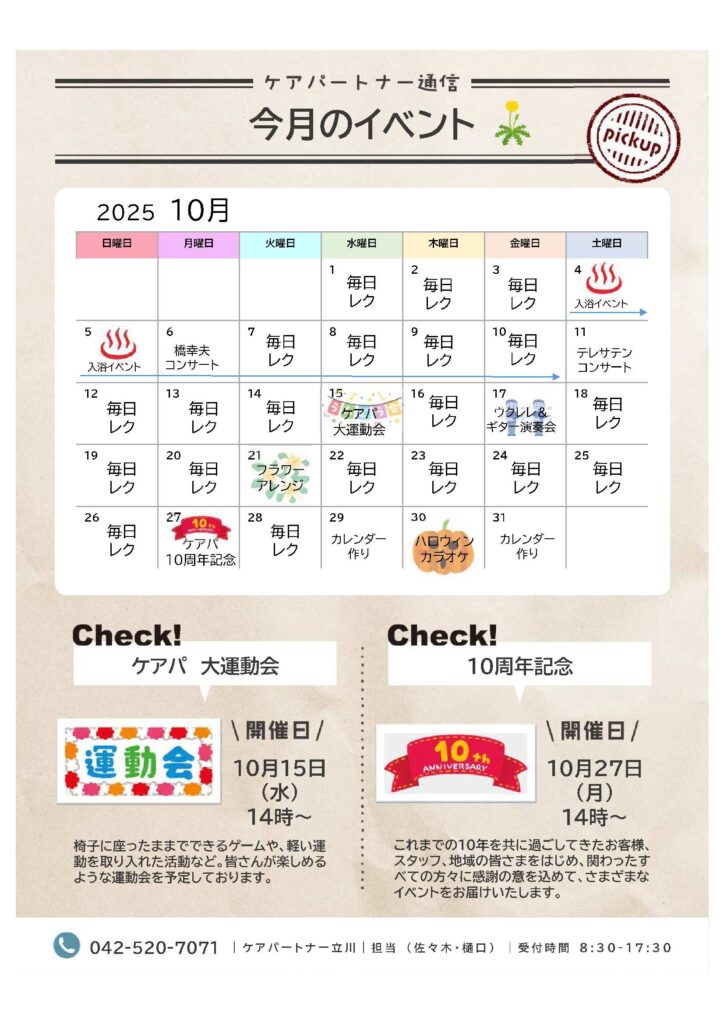 また、地域の方々との交流も大切にしており、近隣保育所の園児とのふれあい会や中学生の職場体験受け入れ、ボランティアさんを多く招致し、お客様・スタッフ・地域の方々が一緒に楽しめるイベントを開催しております。
