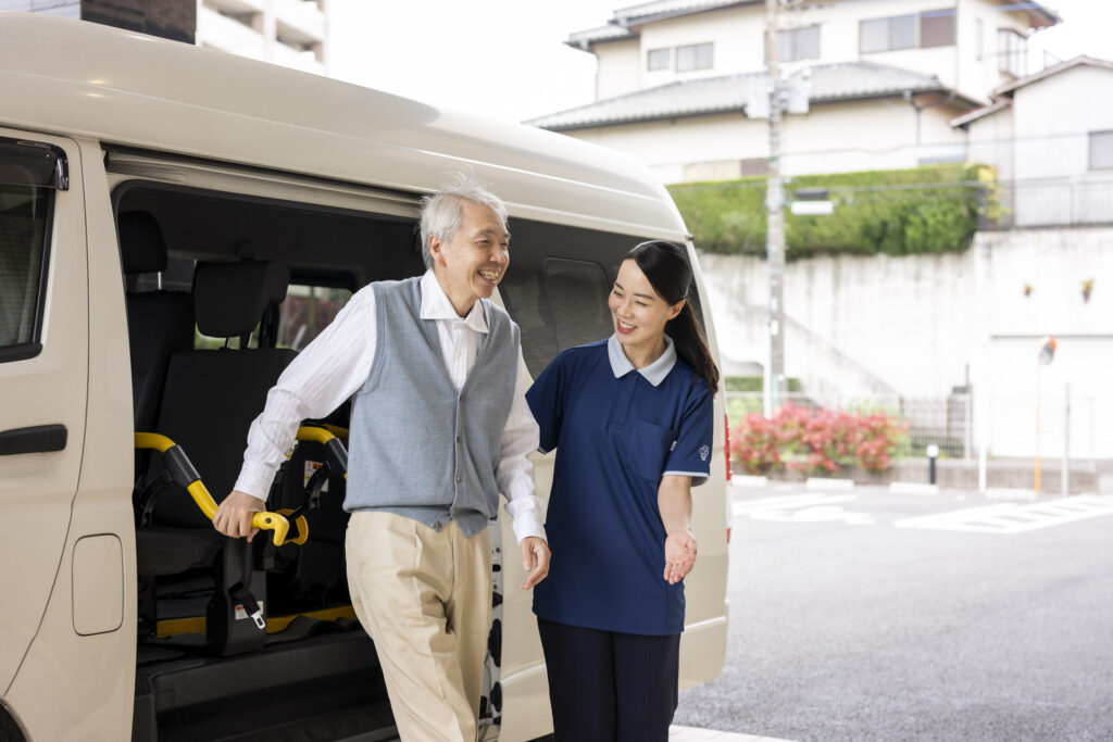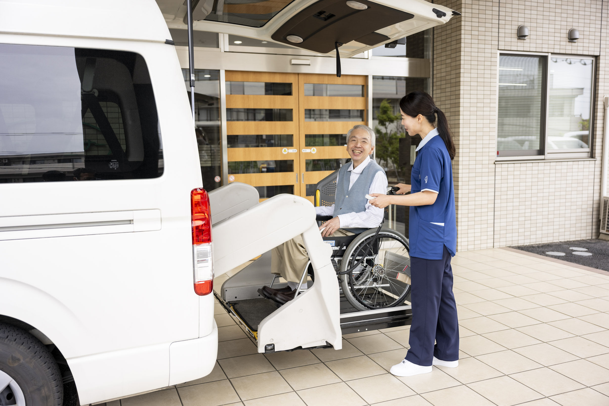 専用車輌で、ご自宅までお迎えし、当社スタッフが責任をもってセンターまでお送りいたします。車椅子の方にも安心してご利用いただけるよう、リフト付きの車輌もご用意しています。