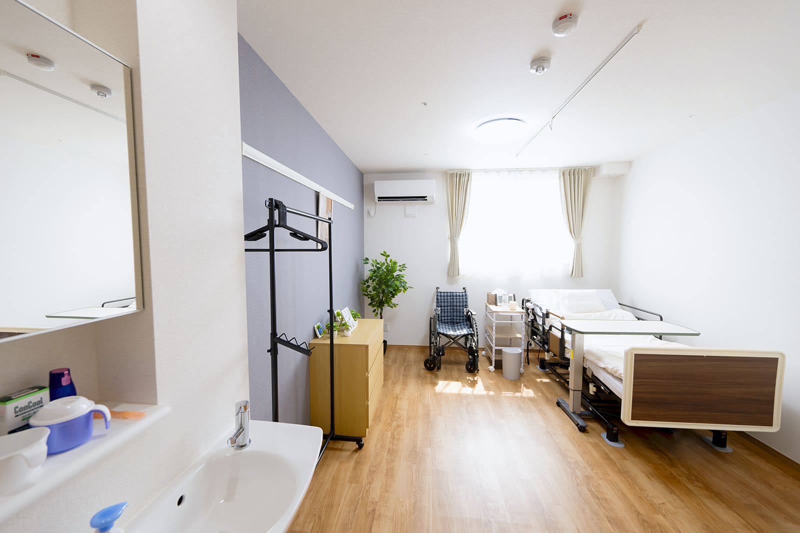 併設する訪問看護事業所から、看護師が日中4名以上、夜間3名以上、訪問介護事業所から介護士が日中8名以上、夜間3名以上の体制で入居者様の医療処置や生活をサポートいたします。
